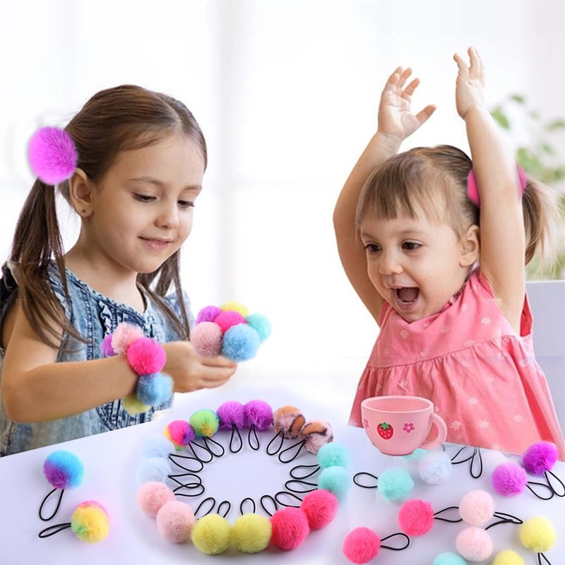 These are such great value and quality Pom Pom hair ties for girls,The rubber band part is the perfect "tightness" and thickness - it doesn't pull the hair like some rubber bands do,The pom poms are sturdy and soft. Not only long and thick hair but also thin hair still managed to hold. They were recommended for any hair type!! you will surprised on how durable this little pom poms which can wear them all day.