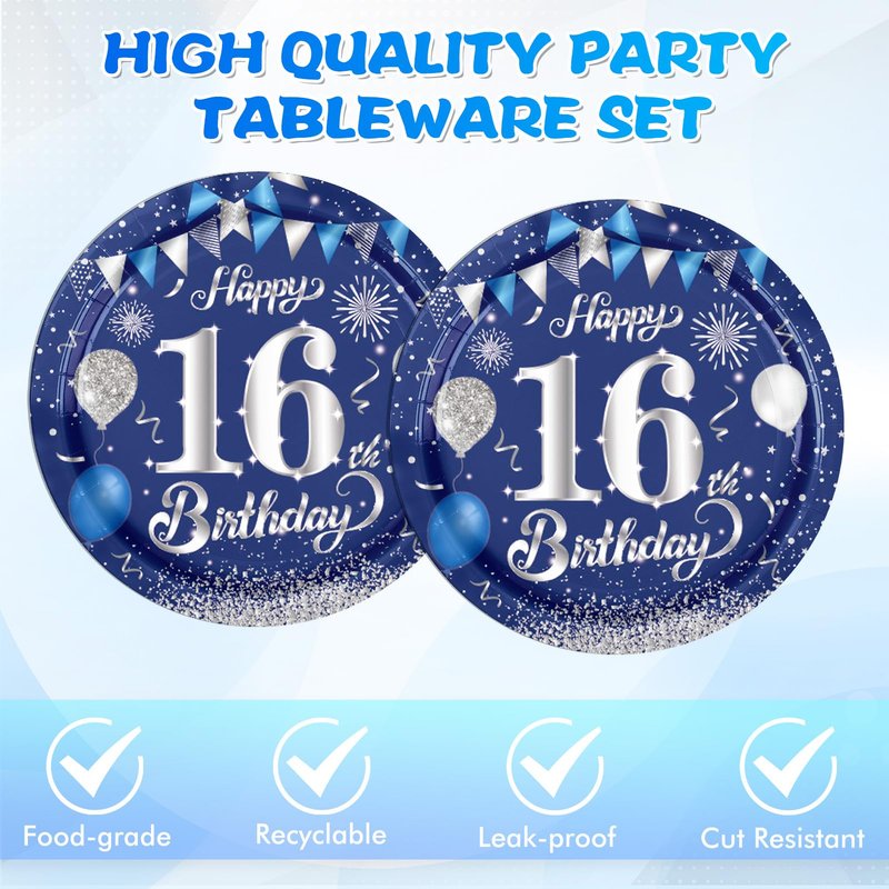 - 【High Quality Material】16 birthday decorations boyare made of food grade material, non-toxic and odorless. Advanced printing technology ensures that the patterns and colors are bright and long-lasting and will not fade. Create a warm atmosphere for your party,silver blue 16th birthday decorations will be unforgettable and impressive party decorations for you.