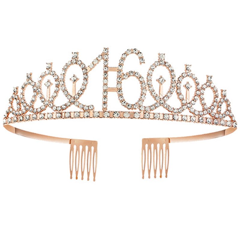 16th Birthday Tiaras and Crowns for Women Girls, Birthday Decorations Rose Gold Sash Crystal Tiara Party Supplies