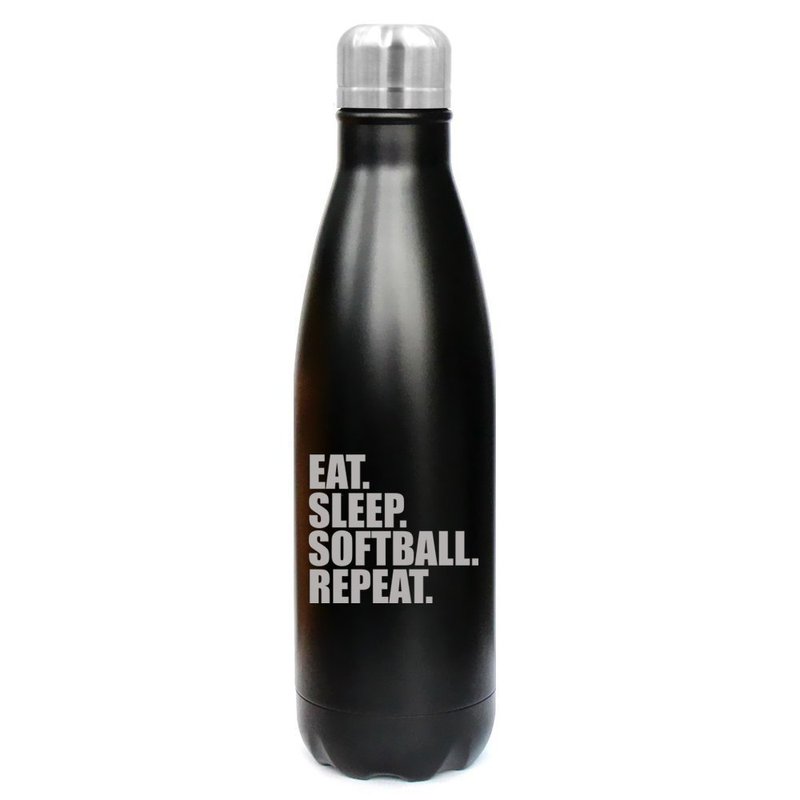 17 oz. Double Wall Vacuum Insulated Stainless Steel Water Bottle Travel Mug Cup Eat Sleep Softball Repeat (Black)