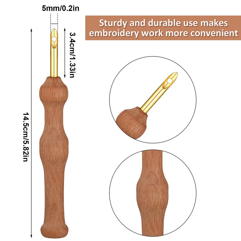 Come with 2 styles of punch needles, one is made of ABS plastic handle and brass pinhead, the other is made of wooden handle and brass pinhead, comfortable to grip with the ergonomic design handle, the pinhead is durable and sturdy enough for satisfying your demands, reduce the friction between the needle and the cloth.