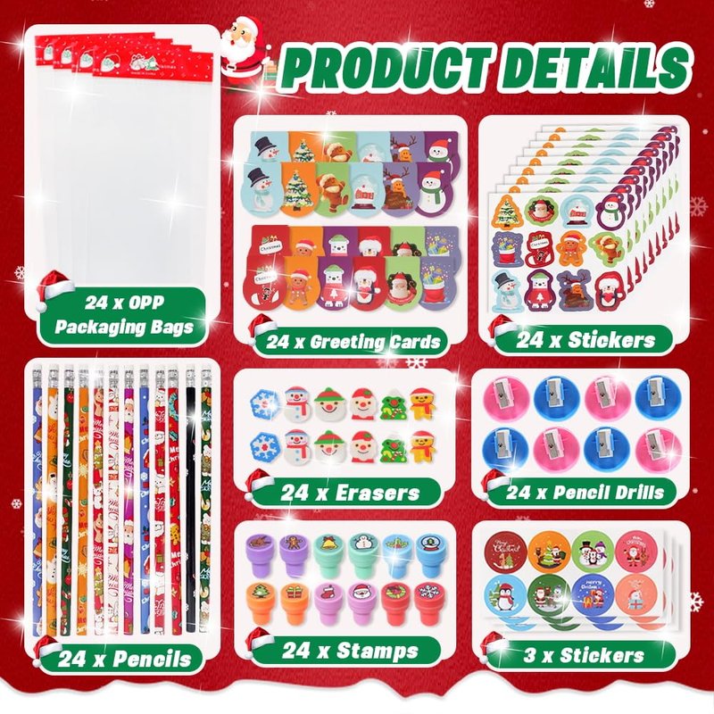 - 【Reassuring Quality】 The Christmas favors set is mainly made of quality paper and plastic material, reliable and safe to use, will not crack or fade, suitable for students and kids to use