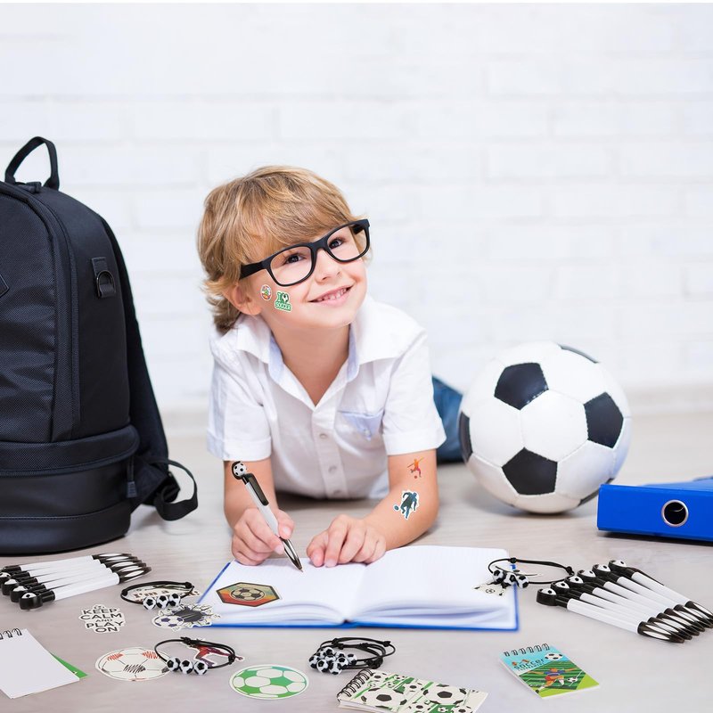 Package Includes:the package contains 24 pieces soccer pens and 24 pieces soccer bracelets in black color,24 pieces soccer mini notebooks,100 pieces soccer sticker,sufficient quantity and classic color can better meet your choosing needs and sharing needs