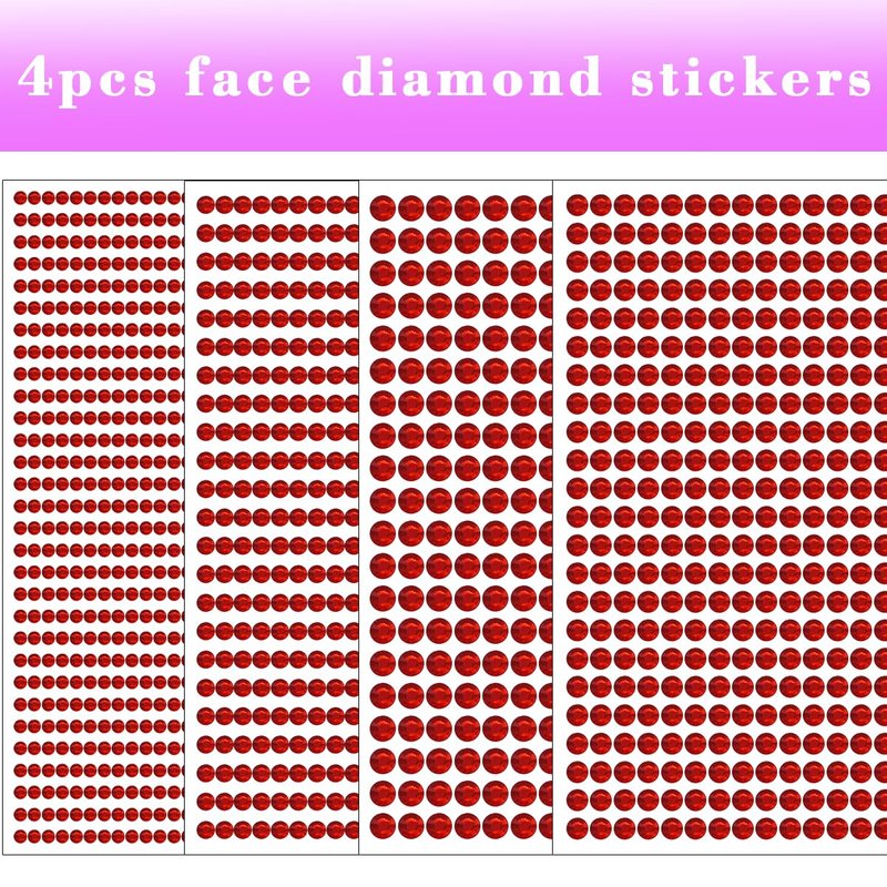 - 【Set Includes】Package contains 4 sheets of self-adhesive diamond stickers, including 750pcs 3mm, and 437pcs 4mm, 352pcs 5mm, 260pcs 6mm. You will look more charming and gorgeous with these shimmering face body gems.