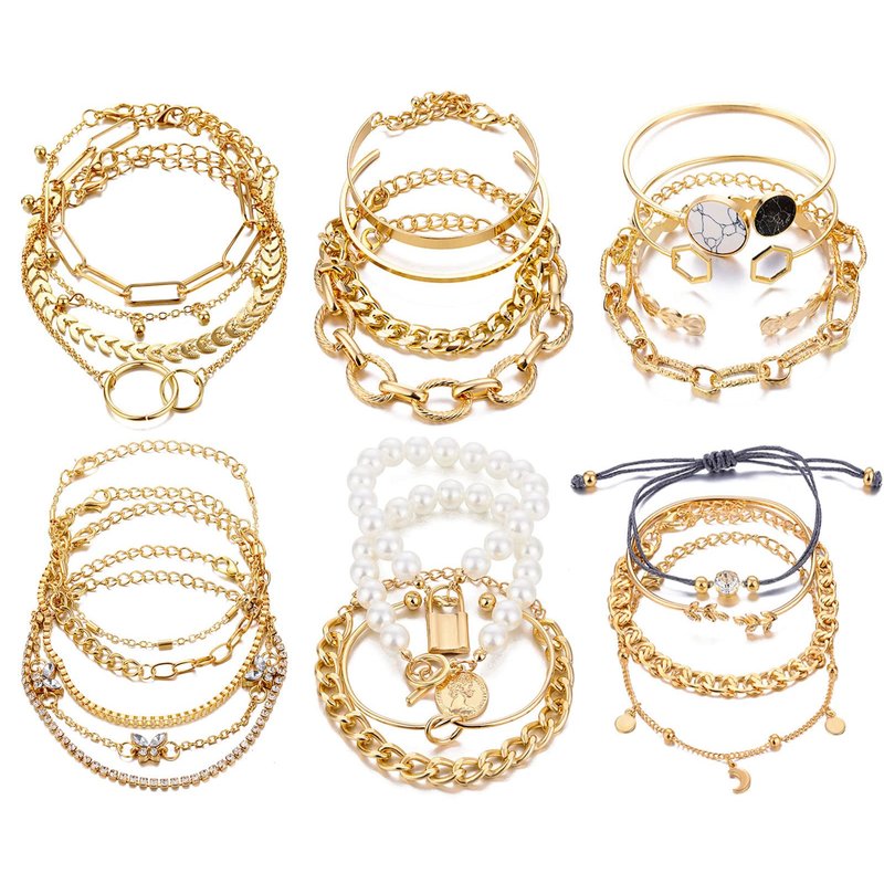 • 【MULTIPLE BRACELET DESIGN PACK】: 6 set of different styles of fashion gold bracelets, 25 individual bracelets (including 7PCS bangles), there are bold and light chains, and delicate thick bracelets, with different pendants, a variety and value package, enrich your jewelry choices.