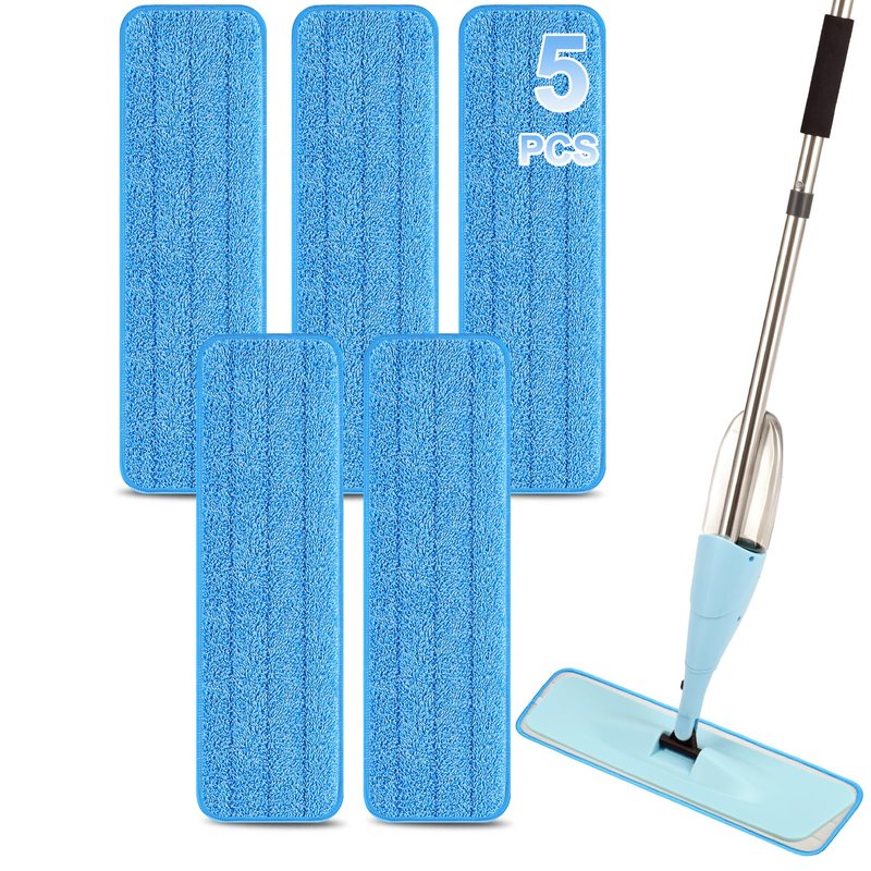 - VALUE MOP REPLACEMENT HEADS - Set of 5 microfiber spray mop replacement heads in the size of 18" x 5.5" fits 15 16 17 18 inch velcro mop frames and hardware, perfect for home and commercial usage to meet your various needs.