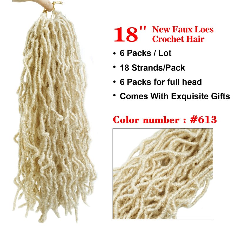 6 Packs Natural New Faux Locs Crochet Hair 18 Inch Extend Soft Locs Braiding Hair Pre-looped Crochet Braids(18Inch, 613#)