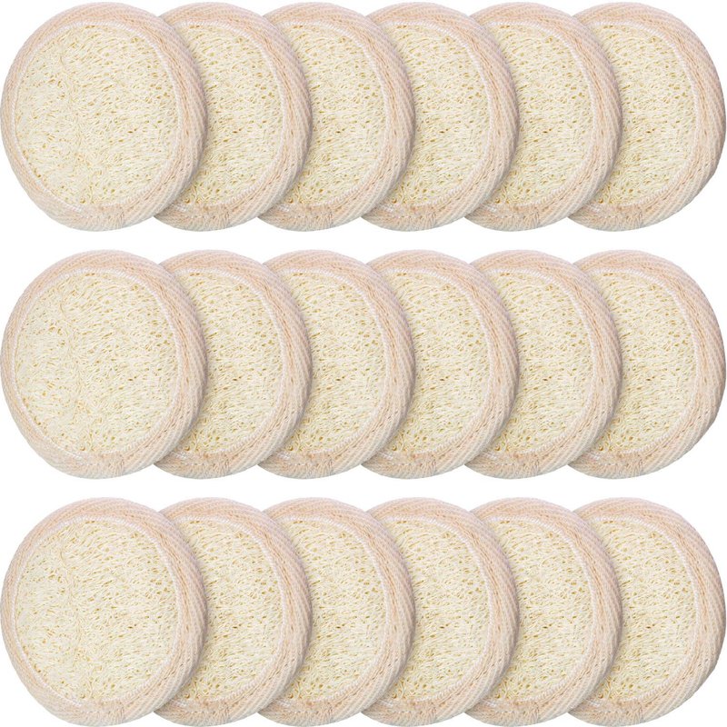 18 Pieces Exfoliating Loofah Pad Mini Round Bath Shower Loofah Sponge Pad Exfoliating Scrubber Natural Bath Sponge Brush for Men and Women