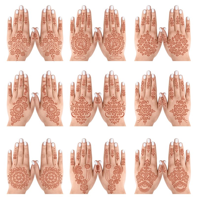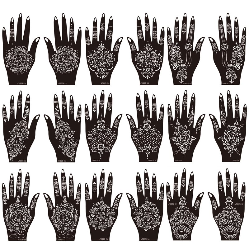 18 Sheets Henna Stencils Henna Tattoo Stencil Kit, for Hands - Indian and Arabian Temporary Tattoo Templates for Hand and Body Art