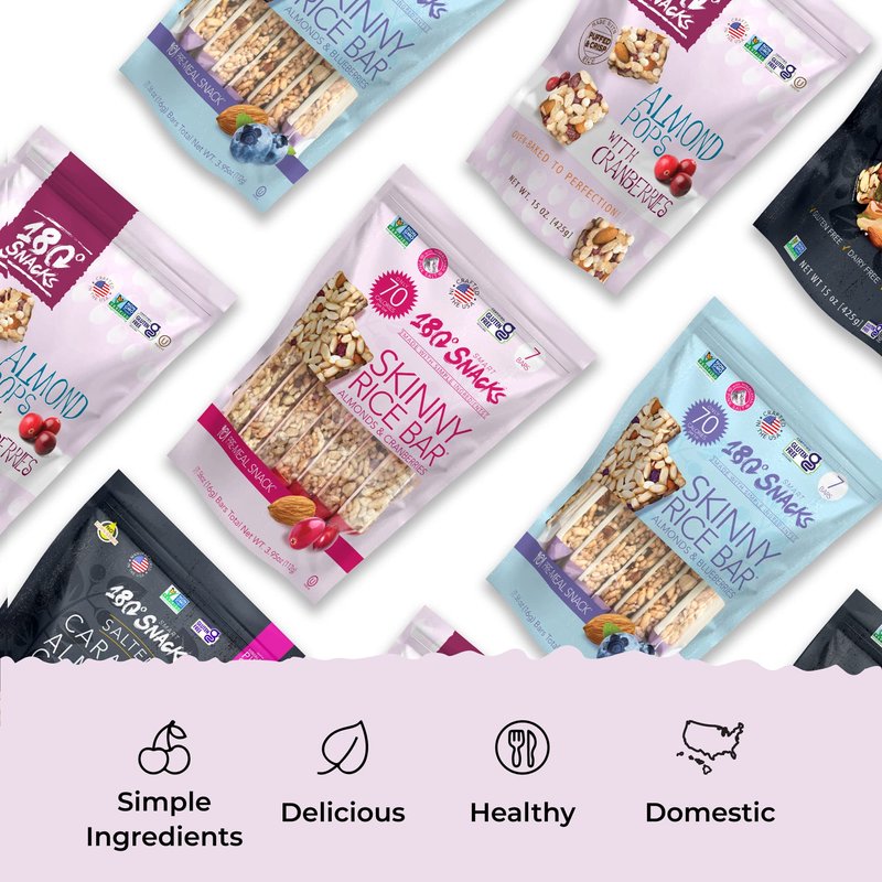 180 Snacks started in our founder's small kitchen in 1998. We are now available in stores nationwide, but still cook all our products in small batches in Anaheim, CA minimal, healthy ingredients that you can trust