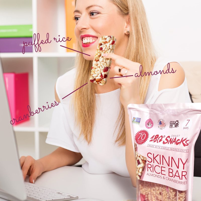 180 Snacks Pre-Meal Snack Skinny Rice Bar with Himalayan Salt 1 Pack, 3.22oz (Cranberry & Almond)
