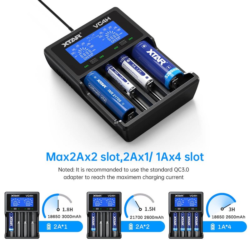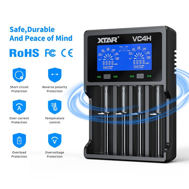 - What You Get: 1*XTAR VC4H Universal 4 Slots updated 2022 Household Battery Chargers, 1*manual, 1*USB cable, , (Package Not including batteries and adapter)
