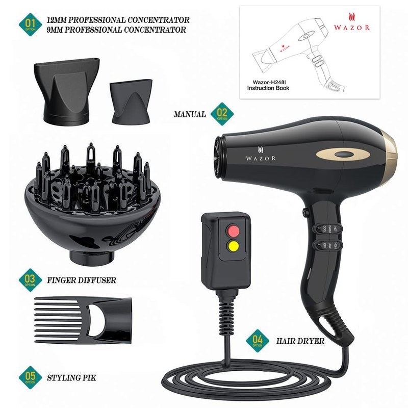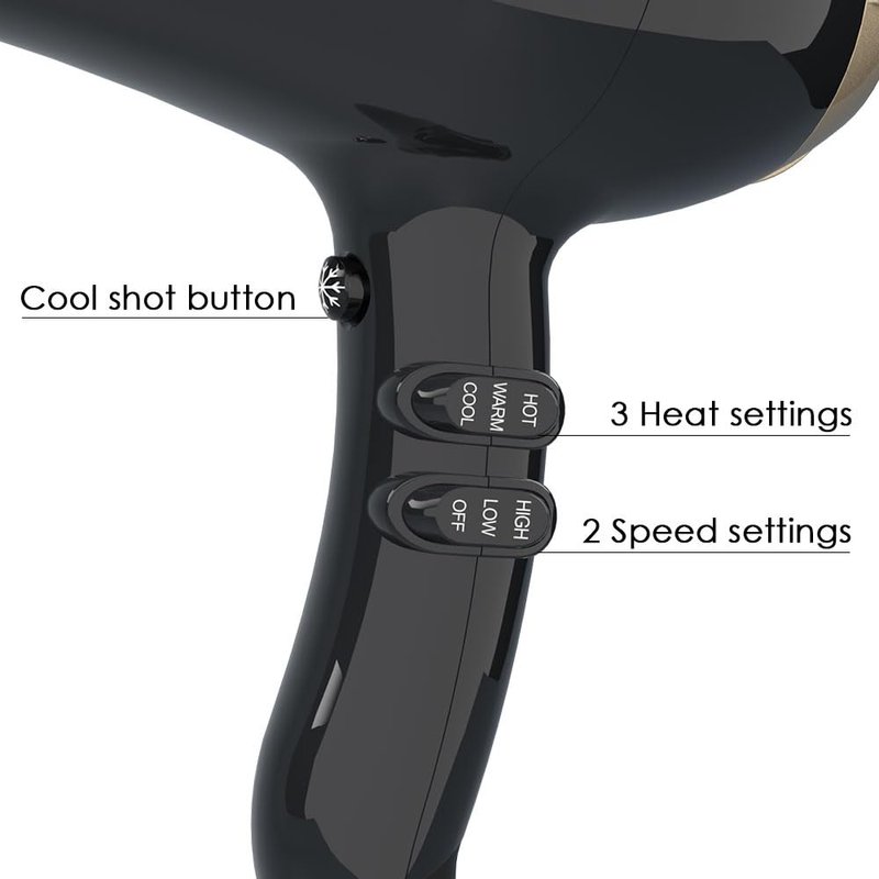 1875W Hair Dryer Tourmaline Lightweight Low Noise Blow Dryer 2 Speed and 3 Heat Settings Fast Drying AC Motor Hairdryer with Diffuser & Comb & Concentrator