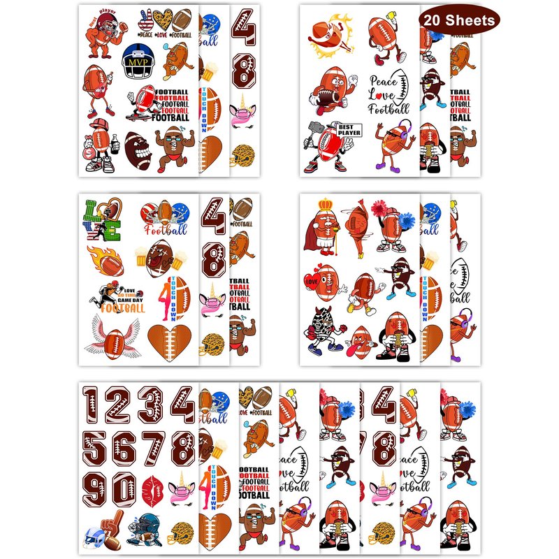 - American Football Theme Party Decorations Design,20 sheets with 188 pieces of Football temporary attoos with vividly colorful psychedelic art from Football