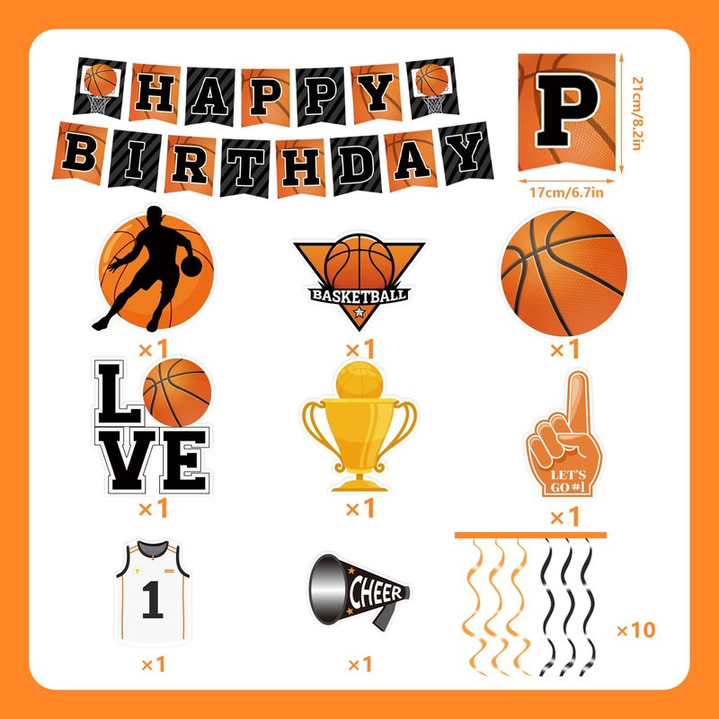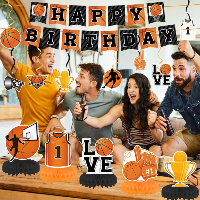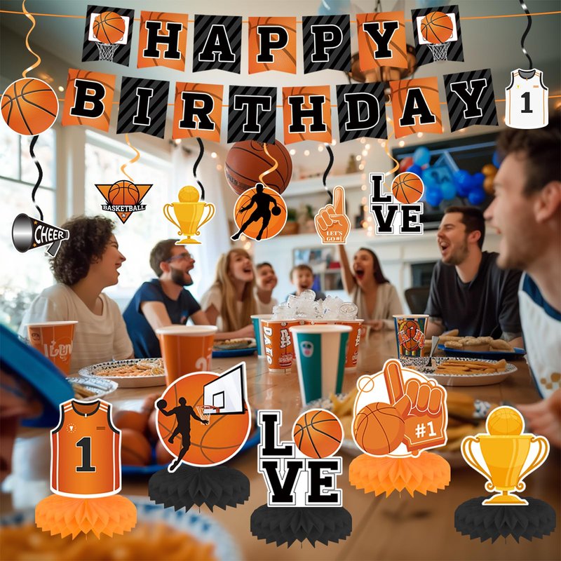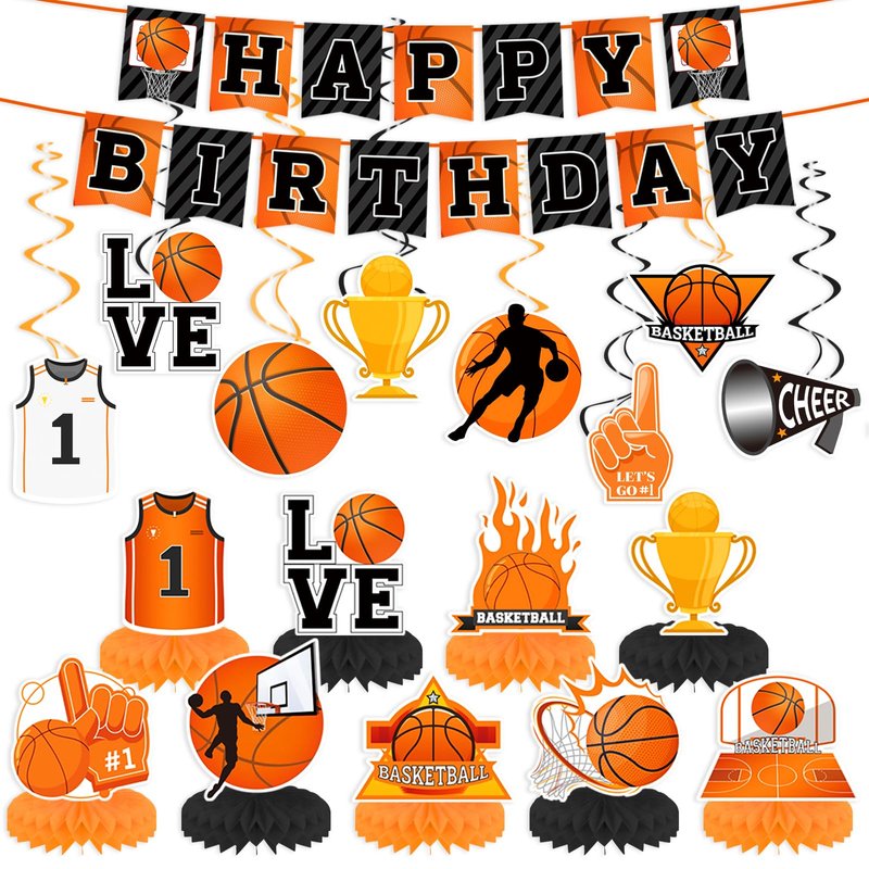 - 【Basketball Birthday Party Decorations】You will get 9pcs of basketball party centerpieces,8pcs hanging swirls and banners,These basketball birthday decorations are perfect for you to host a basketball party.