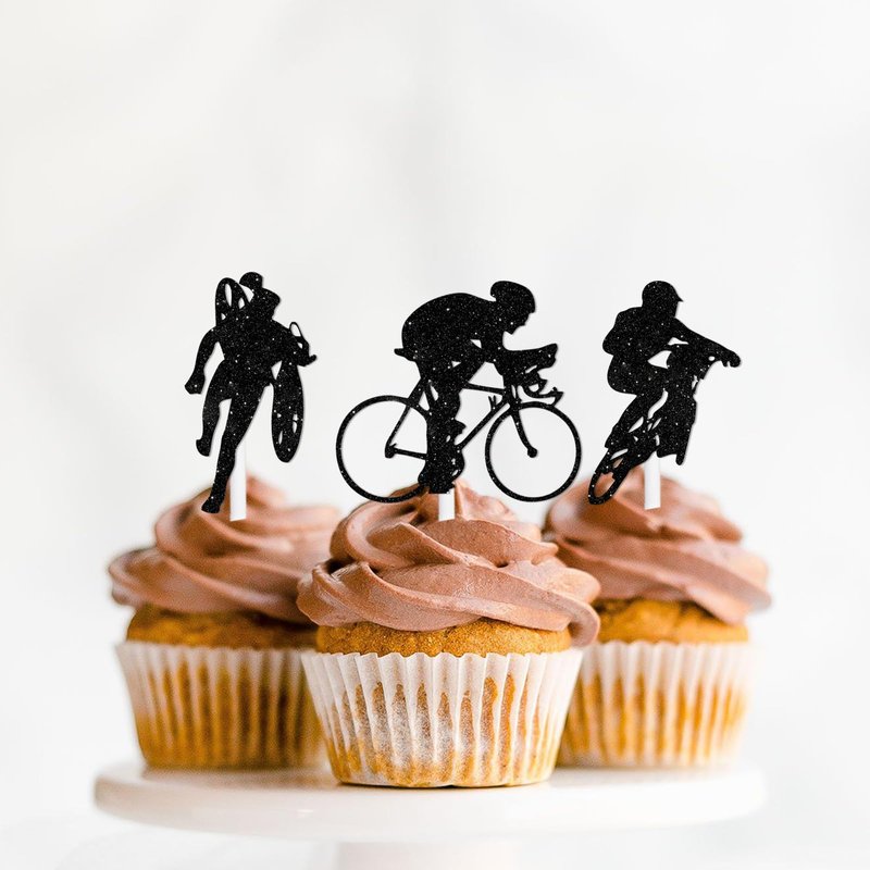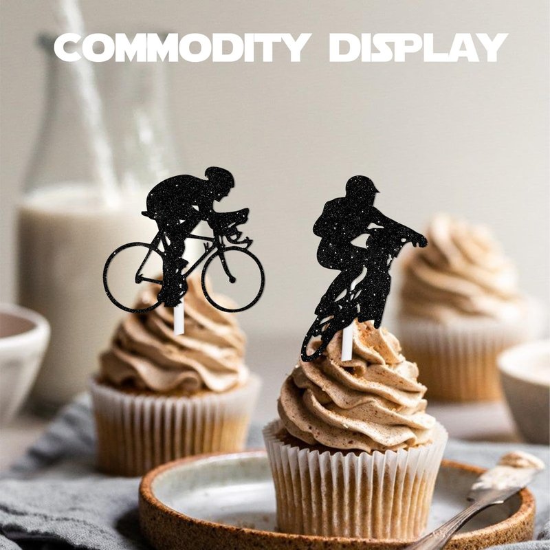 18pcs Black Glitter Bicycle Bike Dessert Cupcake Topper Biking Mountain Sport Theme Decor Supplies Baby Shower Boys Girls Man Family Party Decorations