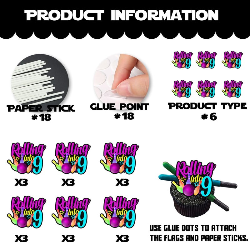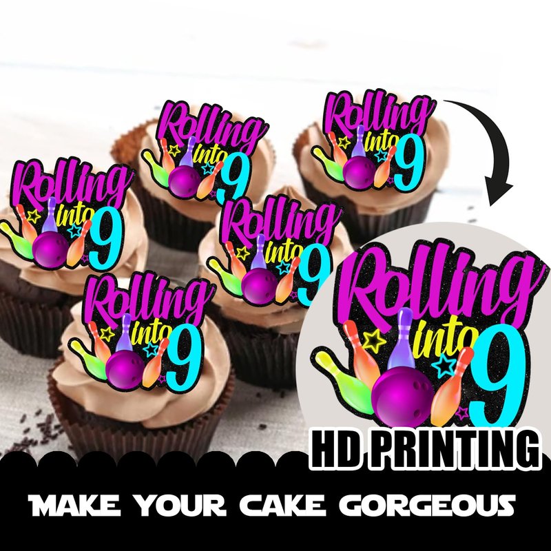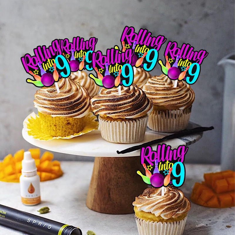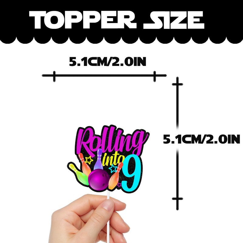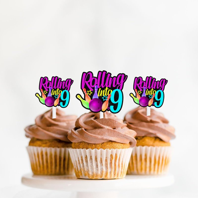 18pcs Glitter Bowling Ball Dessert Cupcake Topper Bowling Rolling into 9 Theme Decor Supplies Boys Girls Happy 9th Birthday Party Decorations