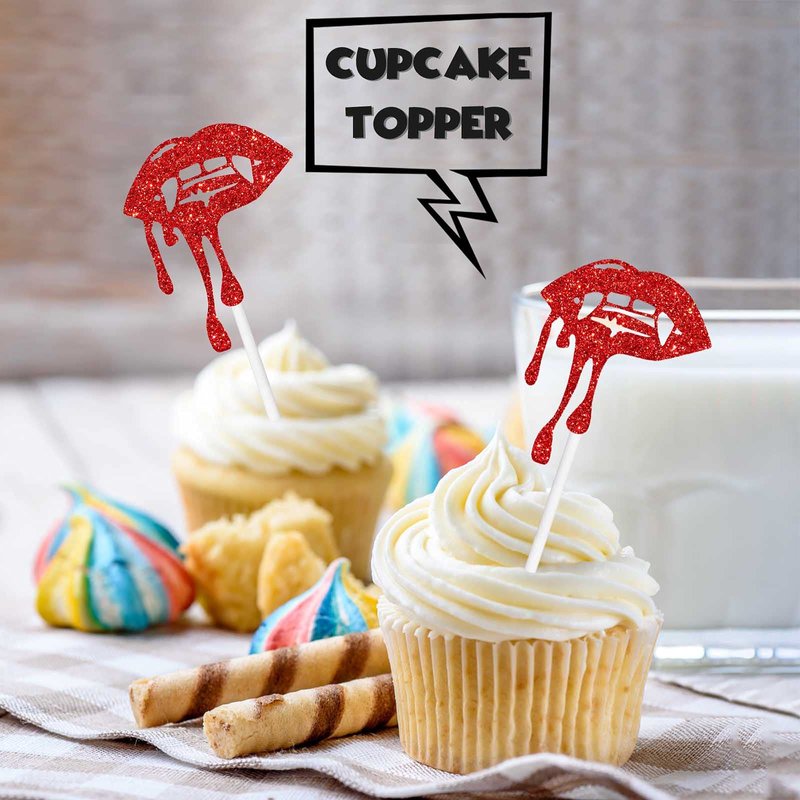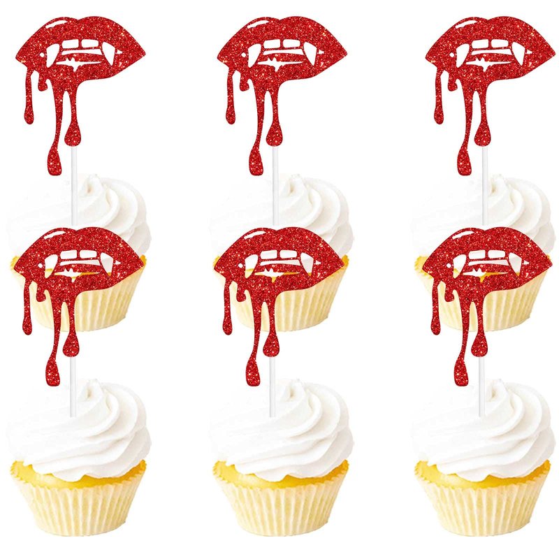 18pcs Red Glitter Halloween Have a Bite Dessert Cupcake Topper Zombie Vampire Fantasy Horror Theme Decor Supplies Boy Girl Man Woman Happy Birthday Party Decorations