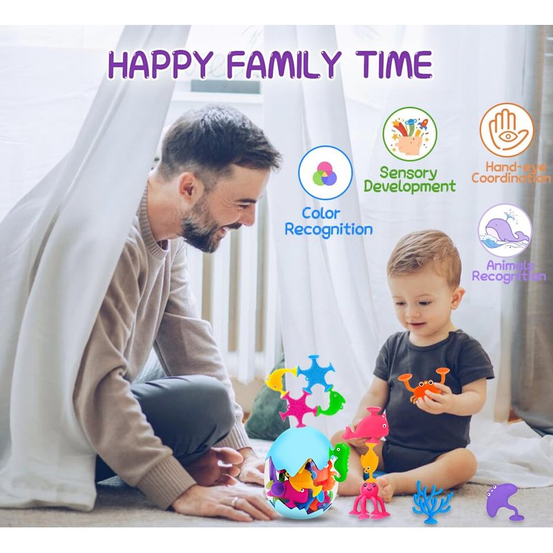 - 【Funny &Portable Bath Toy】 These cute suction toys can be secured to a bathtub, window, or any smooth surface for hours of sensory fun. It helps baby recognize 7 bright colors and 9 ocean animals, develops hand-eye coordination ability. Easter egg design makes these ocean animal toys easy to take along on car trips windows, school lockers, highchairs or office desktops.