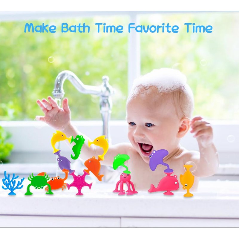 - 【Happy Bath Time】Featured with specially designed 9 kinds of different ocean animals, our suction bath toys cling to the wall or bathtub easily. And the suction is strong and stable!! It takes some effort for your little kids to remove. During burn energy and the "pop" sound of suction and removal, you will find a way to keep your toddler entertained!