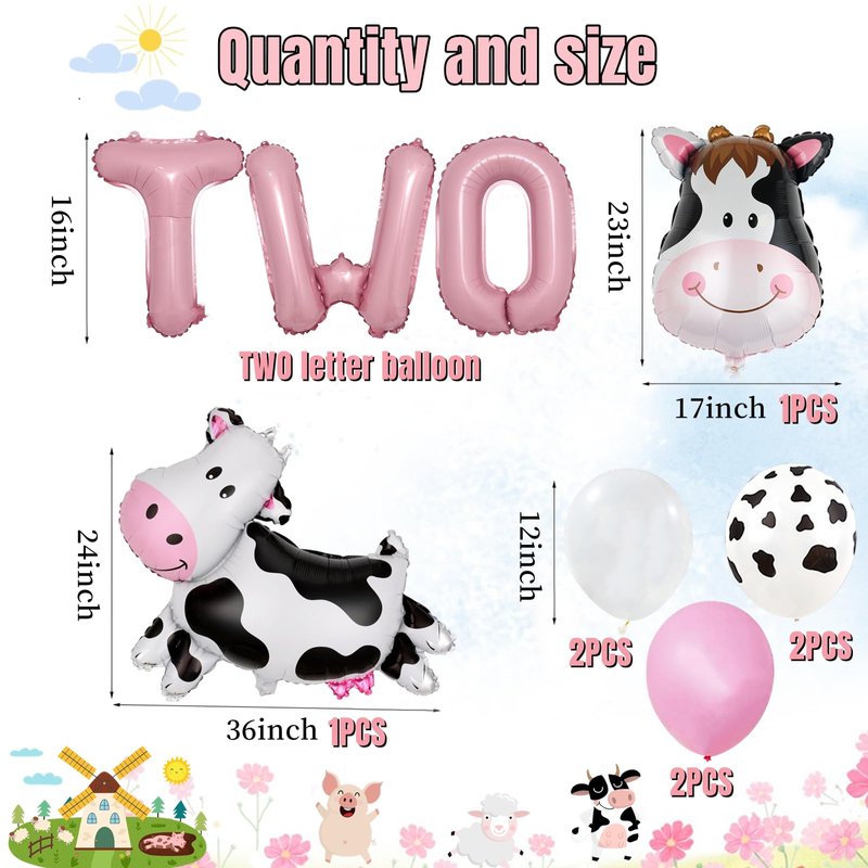 - 【Wide Application】This farm animal theme set perfect for your little 2 year old birthday party, farmhouse theme party, animal theme party,cow theme party,baby showers,also can be applied as photography backgrounds and props to take beautiful photos with your family and friends.