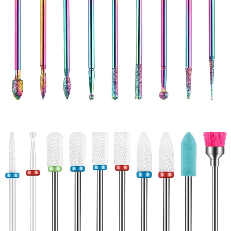 - 19-Piece Nail Drill Bit Set: Our nail drill bits kit comes with 8pcs ceramic bits, 9pcs tungsten carbide bits, 1pcs silicone bit & 1pcs cleaning brush, all in one set for manicure and pedicure, ideal for both beginners and professionals.
