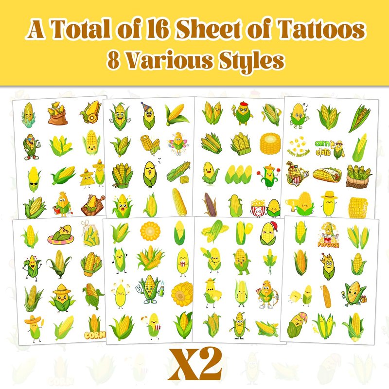 Corn party favors contain 16 sheet corn temporary tattoos (8 styles). Each of corn tattoos has a unique design to make your life brighter.<br><br>