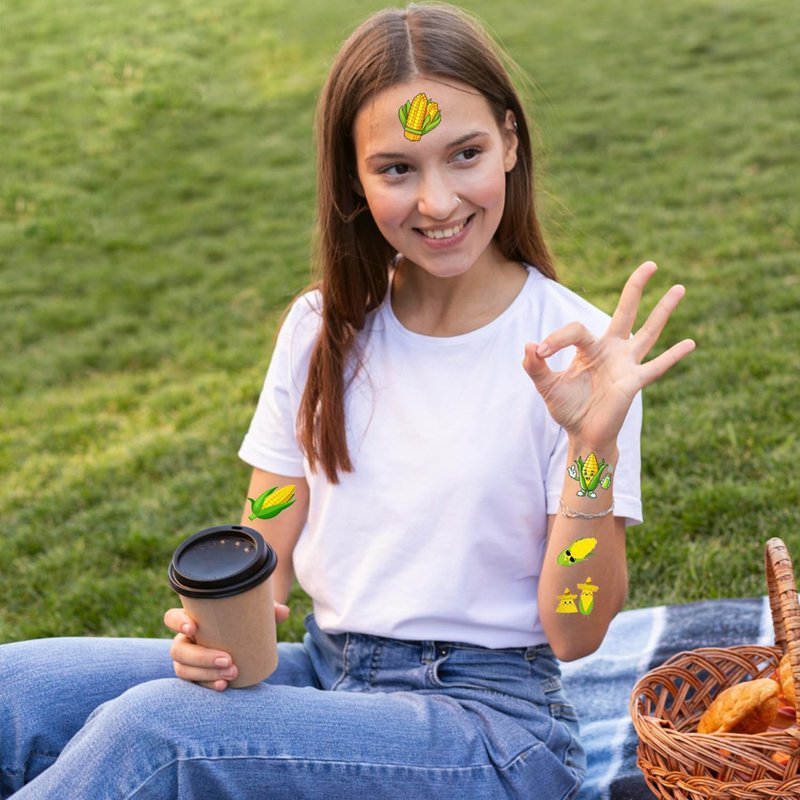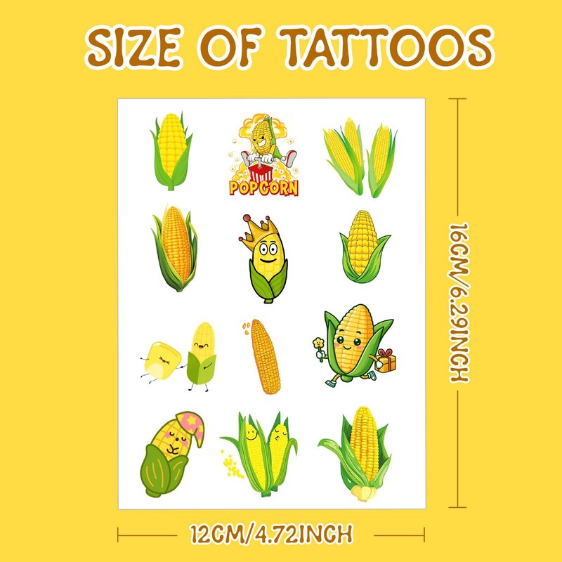 - Widely Application: Funny corn on cob tattoos are perfect decorations for corn themed party, corn birthday party, vegetable party, harvest party, thanksgiving party, baby shower, Children's Day giveaway, classroom rewards, goodie bag fillers, also very attractive for daily use, lovely accessories for corn lovers