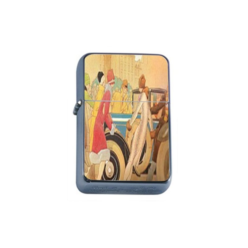 1920s FLAPPERS with Vintage CAR Art Deco Windproof Refillable Flip Top Oil Lighter with Tin Gift Box D-022