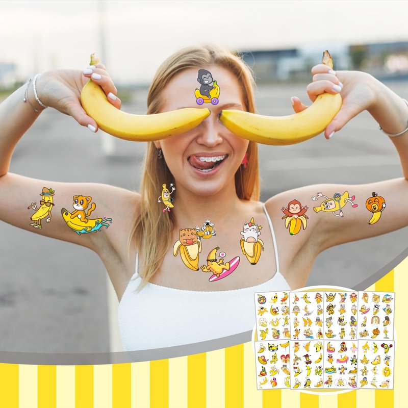 - Fun Cartoon Designs: Features playful and colorful cartoon banana illustrations that are sure to delight kids. These charming tattoos make great surprise gifts for children, friends, and students alike