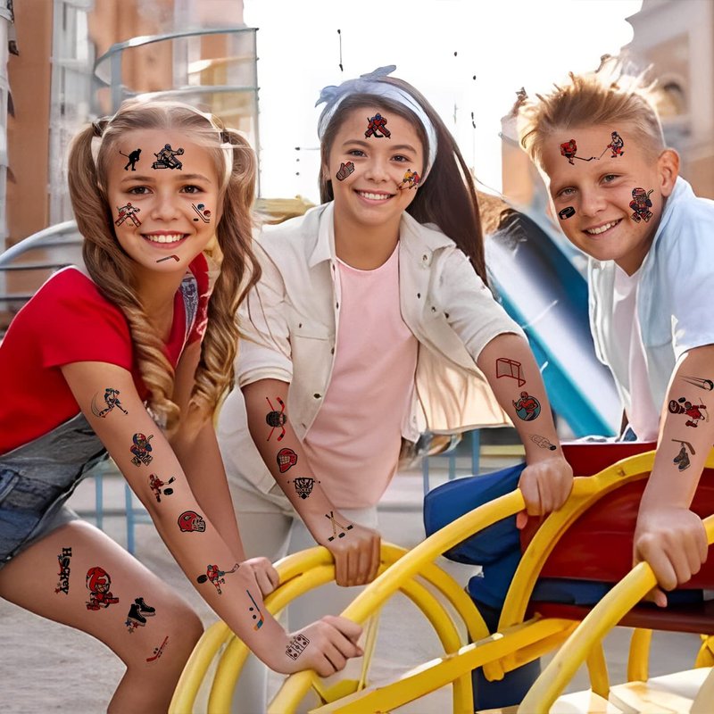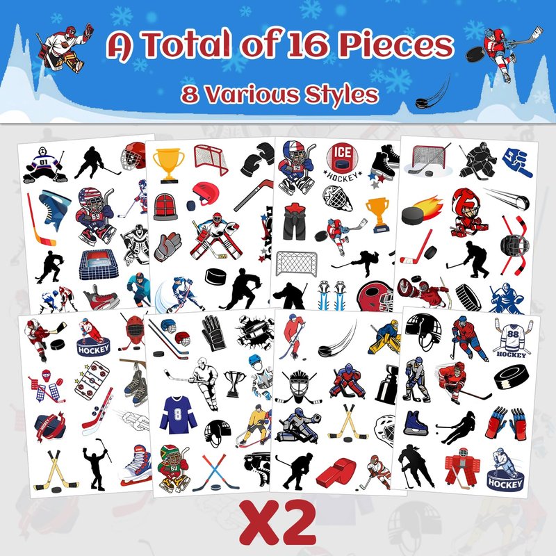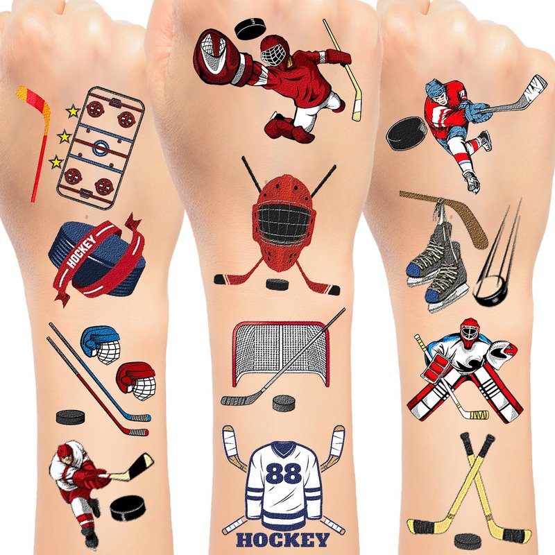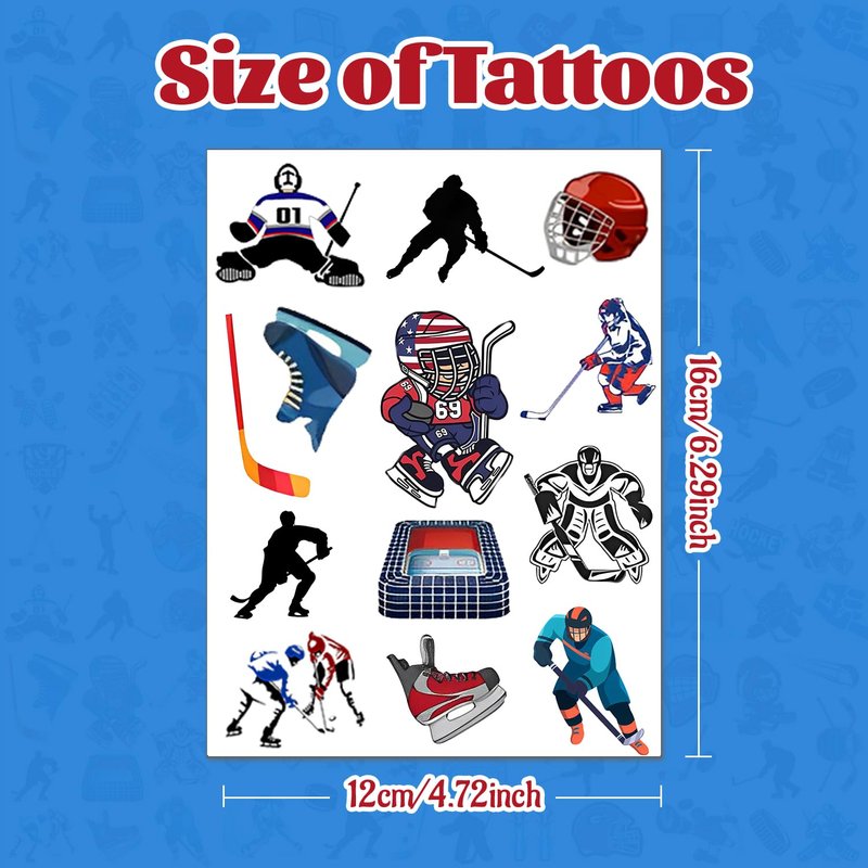 - Ice Hockey Temporary Tattoos Party Favors: You will get 16 sheet ice hockey temporary tattoos over 192 tattoos. Ice Hockey themed tattoos add happiness to party and help everyone in the party was deeply immersed in the warm atmosphere of Ice Hockey party