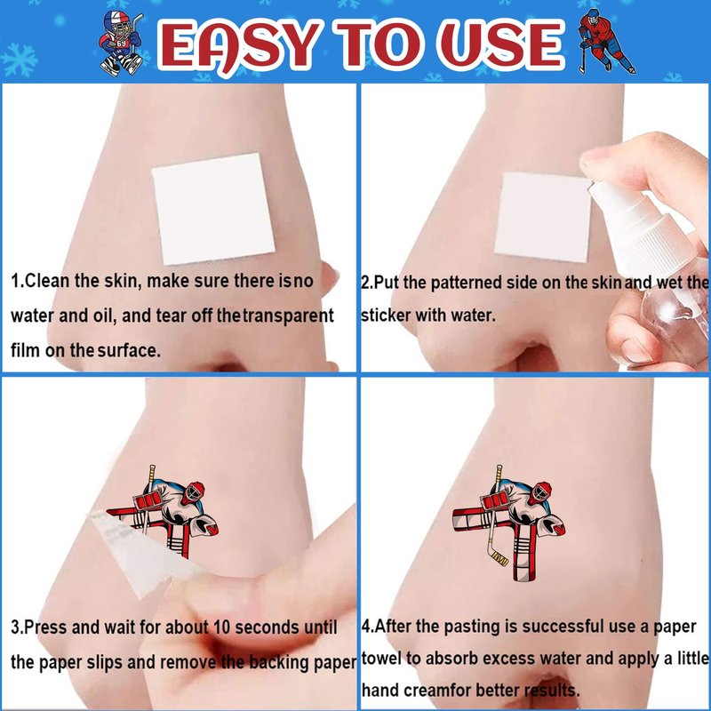- Occasions to Use: Cool ice hockey temporary tattoo stickers are perfect for hockey themed party, goodie bags, pinata fillers,game prizes,classroom prizes, gift back to school party, also very attractive for daily use