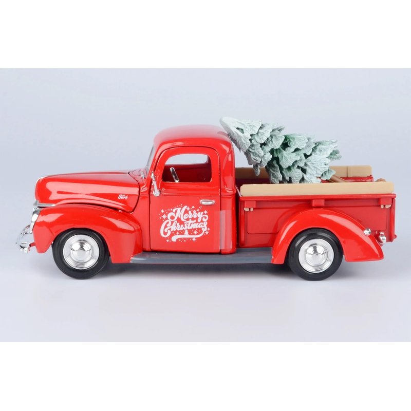 Brand new 1/24 scale diecast car model of 1940 Pickup Truck Red "Merry Christmas" with Tree Accessory die cast model car by Motormax 73234RBIXMT