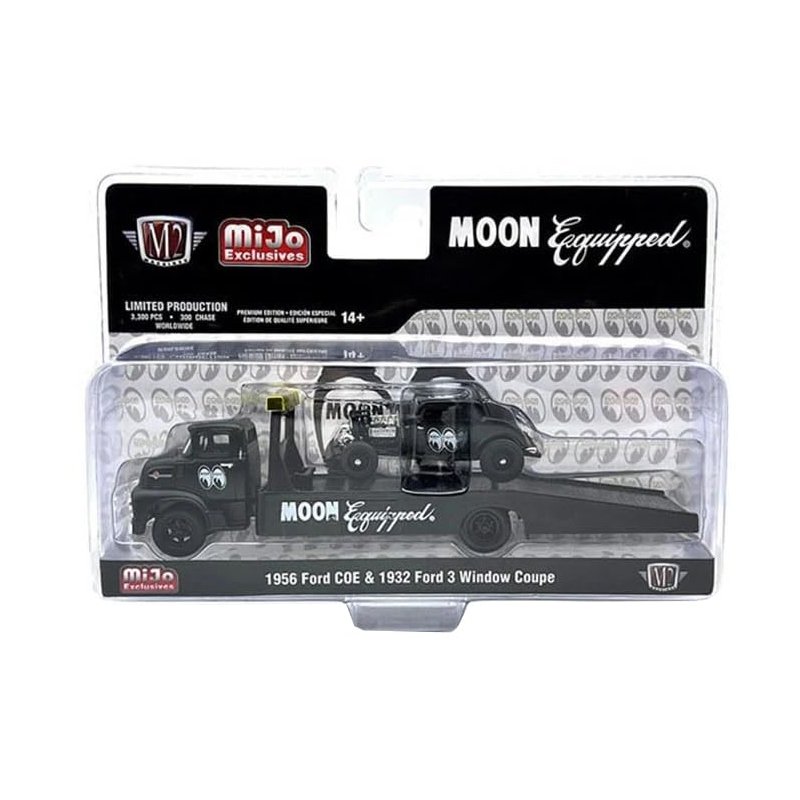 Brand new 1/64 scale diecast model of 1956 COE Ramp Truck Matt Black and 1932 3 Window Coupe Matt Black Limited Edition to 3300 pieces Worldwide die cast model by M2 39200-MJS06