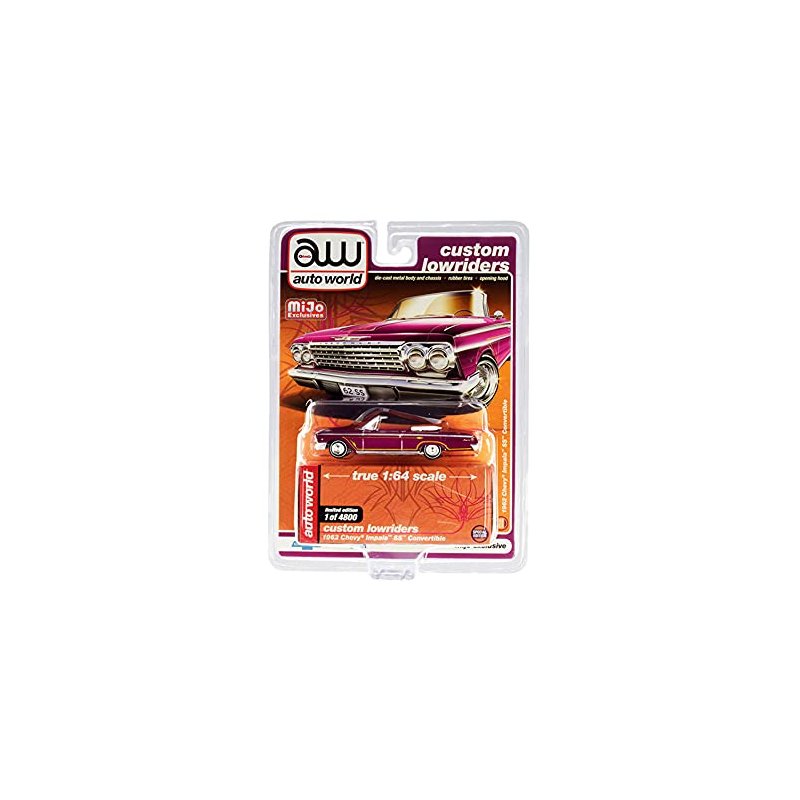 1962 Impala SS Convertible Plum Purple with Yellow Stripes Custom Lowriders Limited Edition to 4800 pcs 1/64 Diecast Model Car by Autoworld CP7663