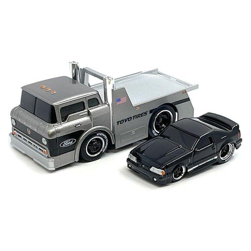 1966 C600 Flatbed Truck Gray Metallic and 1993 SVT Cobra Black Muscle Transports Series 1/64 Diecast Models by Muscle Machines 11556GRY