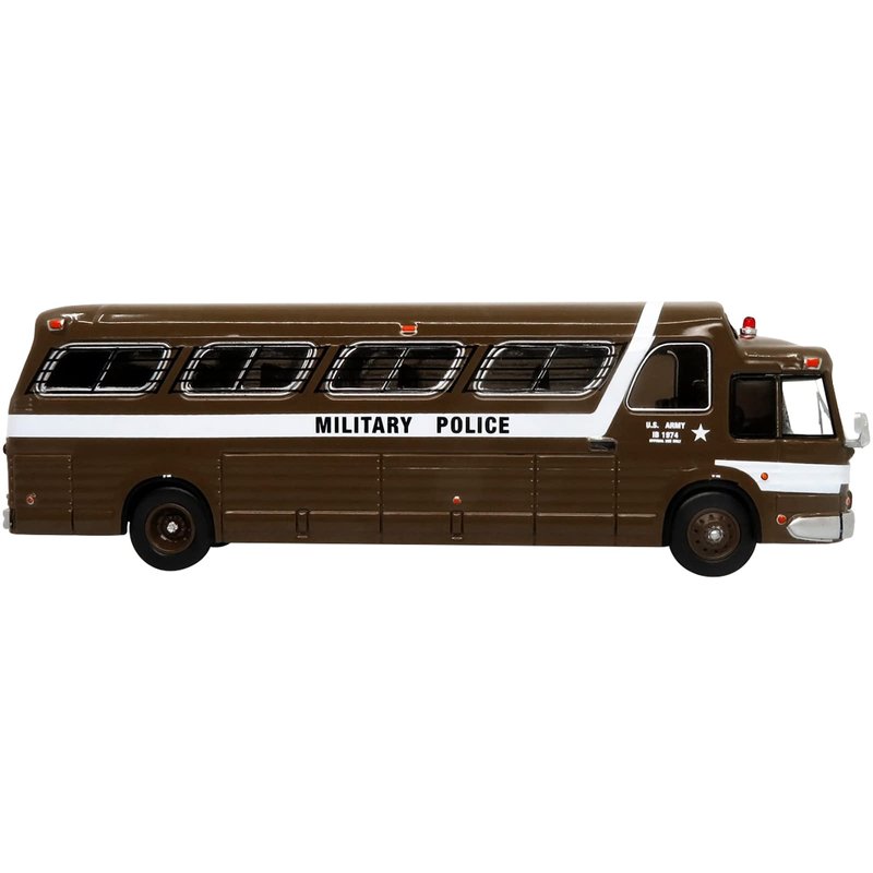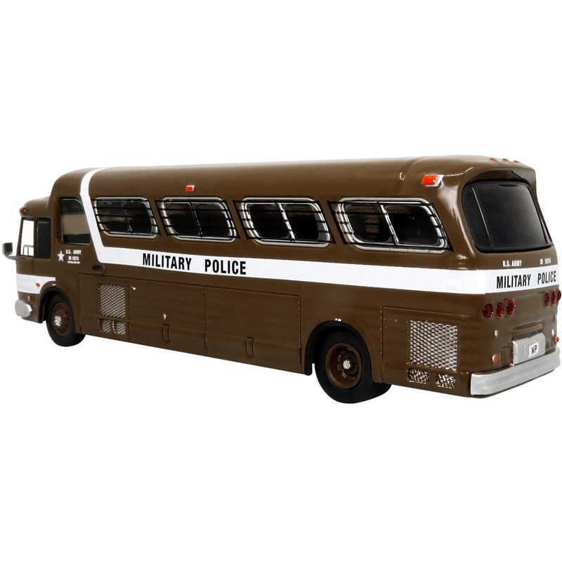 Brand new 1/87 (HO) scale diecast model of 1966 PD4107 "Buffalo" Coach Bus U.S. Army Military Police Destination: "Fort Dix" "Vintage Bus & Motorcoach Collection" die cast model by Iconic Replicas 87-0289