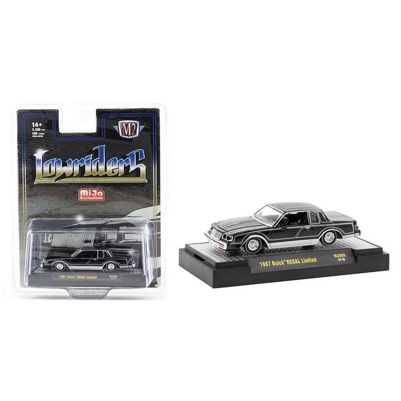 Brand new 1/64 scale diecast car model of 1987 Regal Limited Lowrider Black with Silver Graphics "Lowriders" Limited Edition to 5500 pieces Worldwide die cast model car by M2 31500-MJS