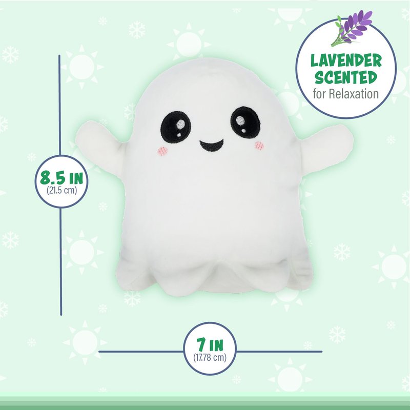 Warm Pals Scented Glow in the Dark Ghost, Microwavable Heatable and Coolable Bedtime Comfort Plush Toys Filled with Natural Grains and Lavender