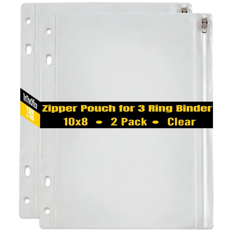 The 1InTheOffice Zipper Pouch for 3 Ring Binder, is a versatile organizational solution designed to elevate your binder experience. This 2-pack of transparent vinyl pockets, measuring 10" x 8", seamlessly integrate with your 3-ring binder, offering efficient and accessible storage for documents and essentials. The clear design ensures instant visibility, facilitating quick identification of contents without the need to unzip. Crafted with durability in mind, these binder zipper pockets feature a robust vinyl construction and a reliable zipper closure, safeguarding your items from wear and tear. Optimize your binder's space with these pockets, eliminating the need for additional folders and enhancing on-the-go convenience. Perfect for students, professionals, or anyone seeking a tidy workspace, this 1InTheOfficeproduct strikes the ideal balance between functionality and practicality.