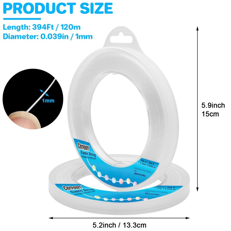 - 【Elastic String Size】➤Clear elastic bracelet string is approx.394 Feet/120m/131 yds in length,1mm (0.039in) diameter.1 mm fits for most beads and 120m length is long enough to meet your all kinds of bracelets,necklace jewelry making and other DIY craft projects.(Note: The item that you received does not include beads.)