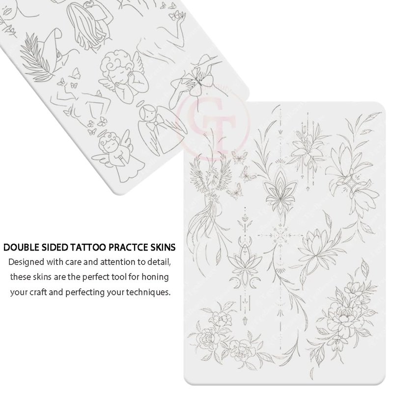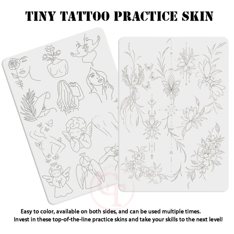 - Improving your tattooing skills with our pre-printed tattoo practice skin. Designed especially for tattoo artists and beginners to refine their craft. With its realistic texture, pre-printed designs, and durability, you can elevate your skills to the next level and confidently embark on your tattooing journey.