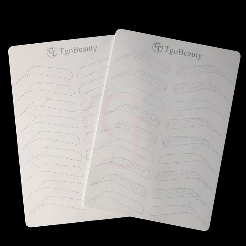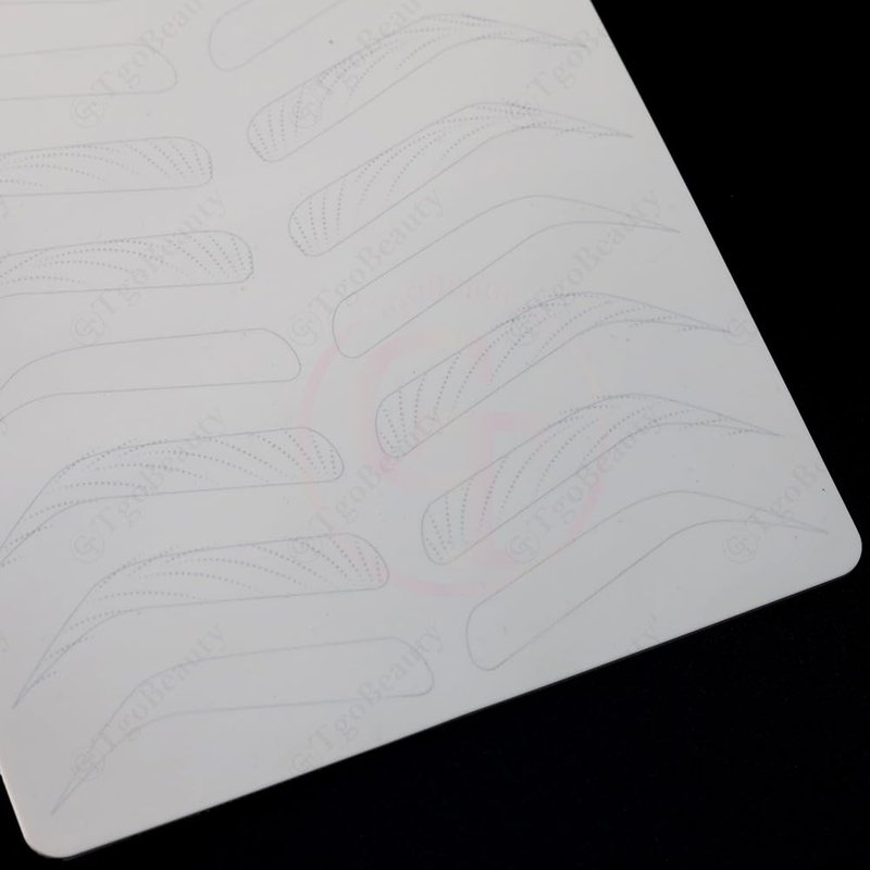 Features: Item Name: TgoBeauty Brow Permanent Makeup Practice Skin Material: Silicone Skin Color: White Shiny Silver Outlines Thickness: 1.5mm Double Sided Printed Front Side: 9 pairs empty eyebrow shapes with thin tracer dots Back Side: full hairstroke brow frames with 3 different common patterns Can be used to practice any brow technique. Level up your nano hair stroke technique. Package: 1pc X White Brow Permanent Makeup Practice Skin