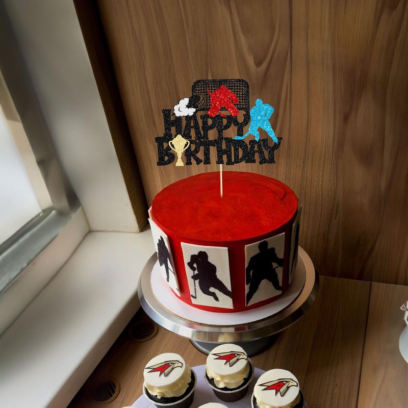 - 【NO Required】: 1Pcs Hockey Happy Birthday Cake Topper can put in the cake directly! This Hockey Happy Birthday Cake Topper saves your time and super easy to use. You can easily dress up your birthday theme cakes, yes! but don't stop there, put them into desserts, cookies, fruit pieces, appetizers, muffins and so much more!