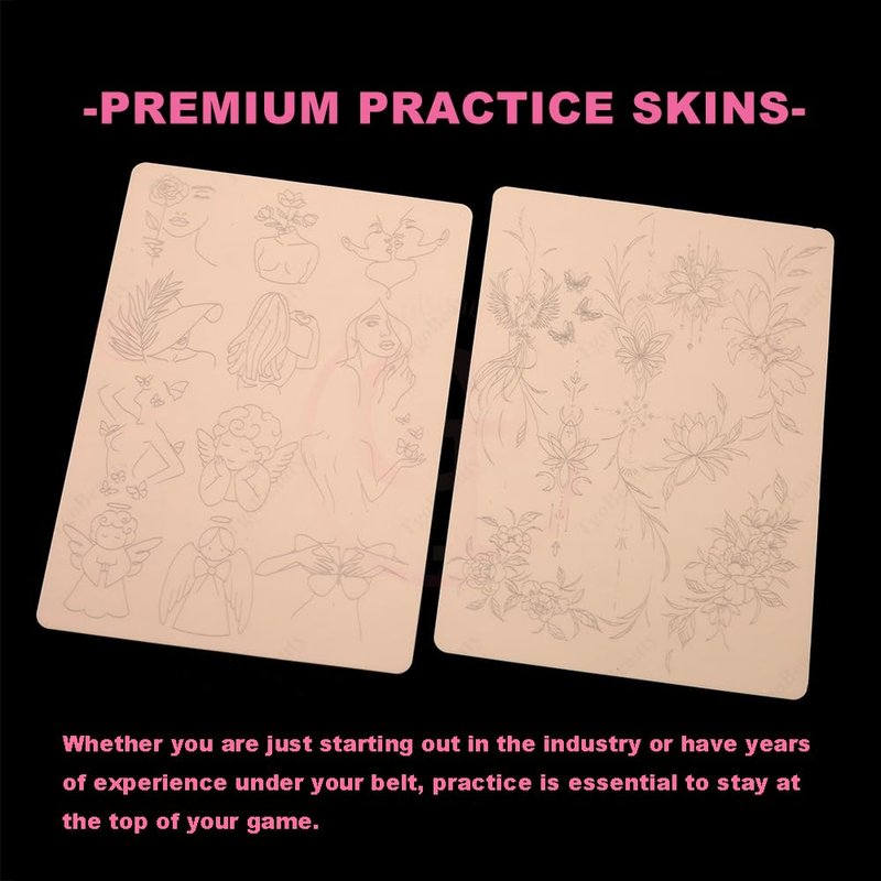 - Improving your tattooing skills with our pre-printed tattoo practice skin. Designed especially for tattoo artists and beginners to refine their craft. With its realistic texture, pre-printed designs, and durability, you can elevate your skills to the next level and confidently embark on your tattooing journey.