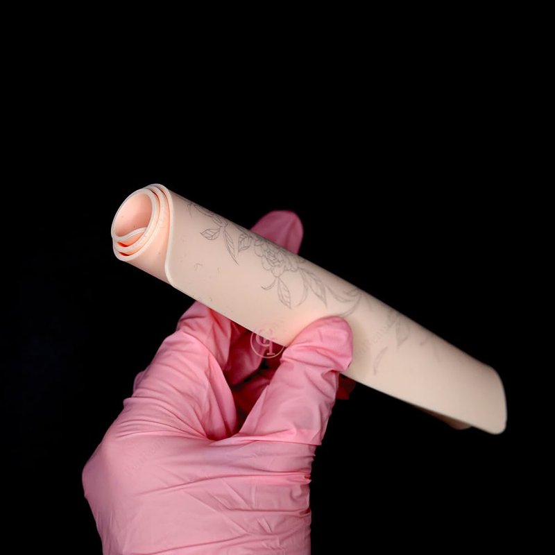 - Material: the pink tattoo practice skin is made of high quality silicone. Thickness of skin is 1.5mm. These skins replicate the thickness and texture of real skin and are compatible with any machine and needles.