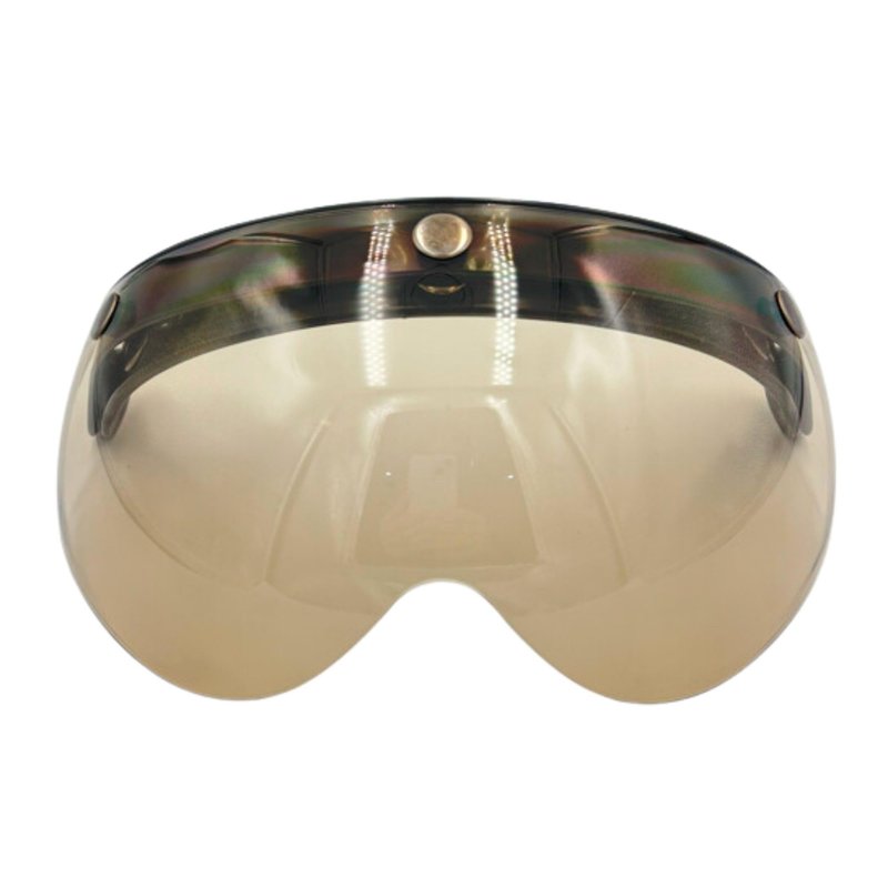 (1PCS) 3-Snap Removable Motorcycle Helmet Visor/Shied with Flip-Up Tinted Bubble Lens | Universal, Retro, Windproof & Anti-Fog Mini Sun Shield Replacement for Half-Face Helmets (Brown)