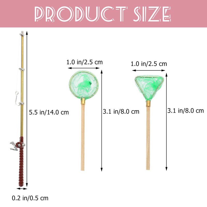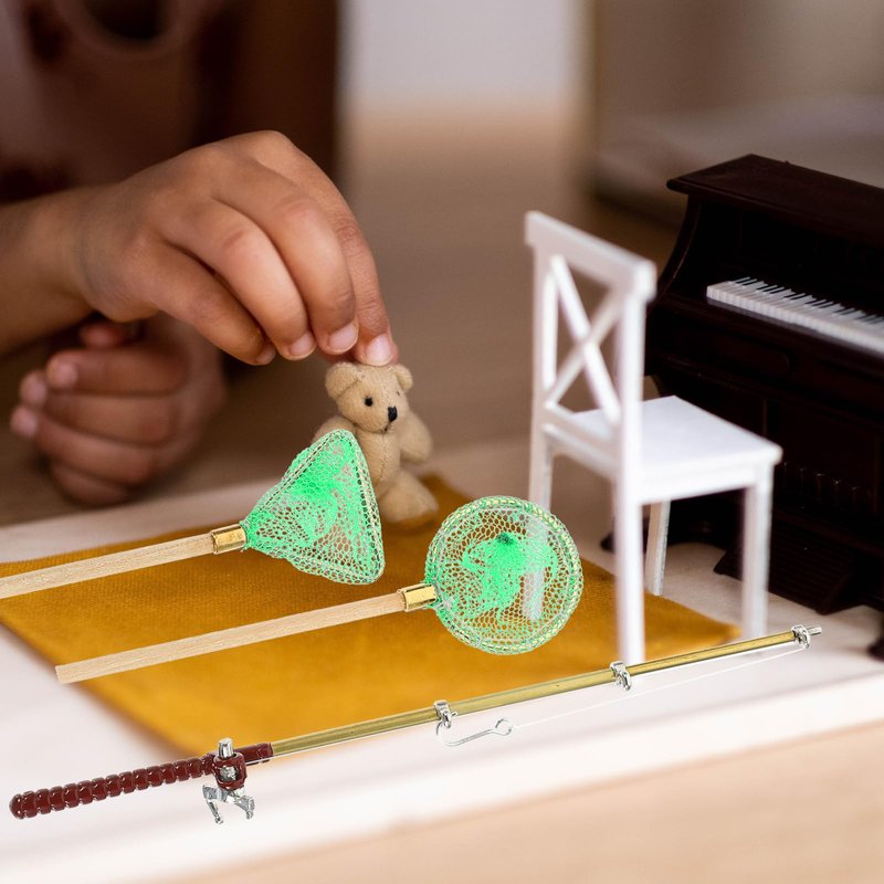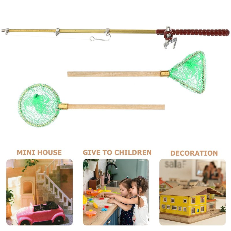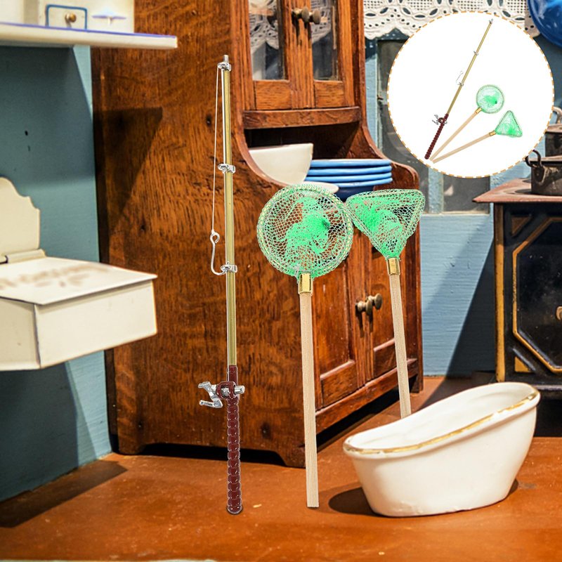 - Miniature Fishing Rod - This miniature fishing pole and fishing nets models set is house accessories, easy to place and versatile