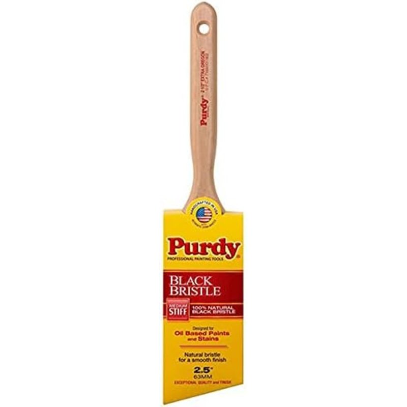 Purdy's black bristle brushes have natural filaments for a smooth finish. They are designed for use with oil-based paints and stains. Black bristle brushes hold and deliver more paint than any other natural material, and the naturally flagged tips produce smooth results on a wide range of surfaces. Starting with the finest bristles which are cleaned and straightened, varying bristle lengths and stiffness are blended to deliver exceptional quality, wearability and performance when applying oil-base enamels, primers and stains.