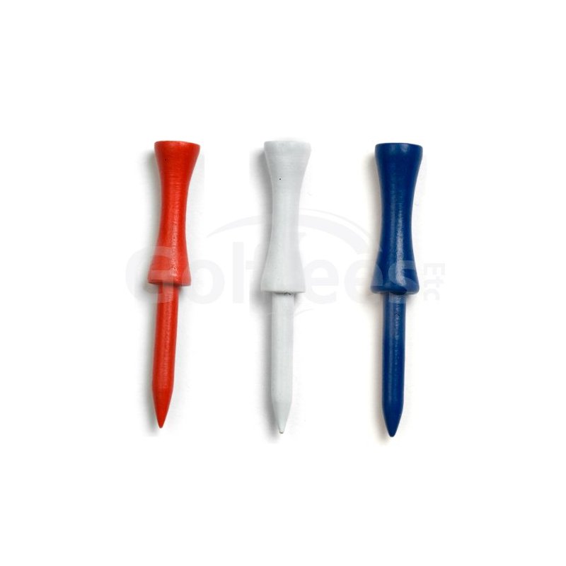 2 3/4" Inch Step Down Golf Tees | Made from Natural Hard Wood | Strong, Light Weight & Biodegradable Material | Pack of 100 - Red/White/Blue Mix